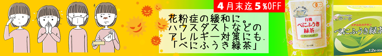 メチル化カテキンが含まれている有機べにふうき緑茶。春を気持ちよく過ごしたい方におすすめの緑茶です。