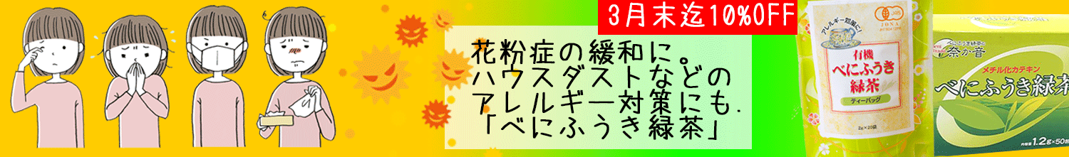 メチル化カテキンが含まれている有機べにふうき緑茶。春を気持ちよく過ごしたい方におすすめの緑茶です。