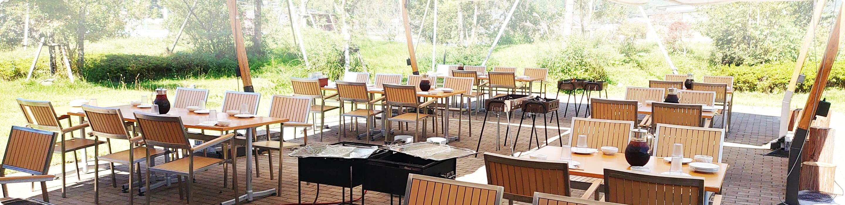 レストランのガーデンを利用したBBQプランです。ご予約はホームページよりご利用いただけます。