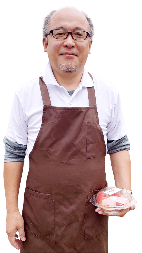 元々は料理人だったため、素材の持つ味にはとても敏感。特に果物に関しては食べ尽くした、と言っても過言ではないくらい、様々なものを食べてきたようです。フルーツ博士の異名を持つほど、フルーツの知識に長けています。農家の方からも熱い信頼がある、朗らかな店長です。